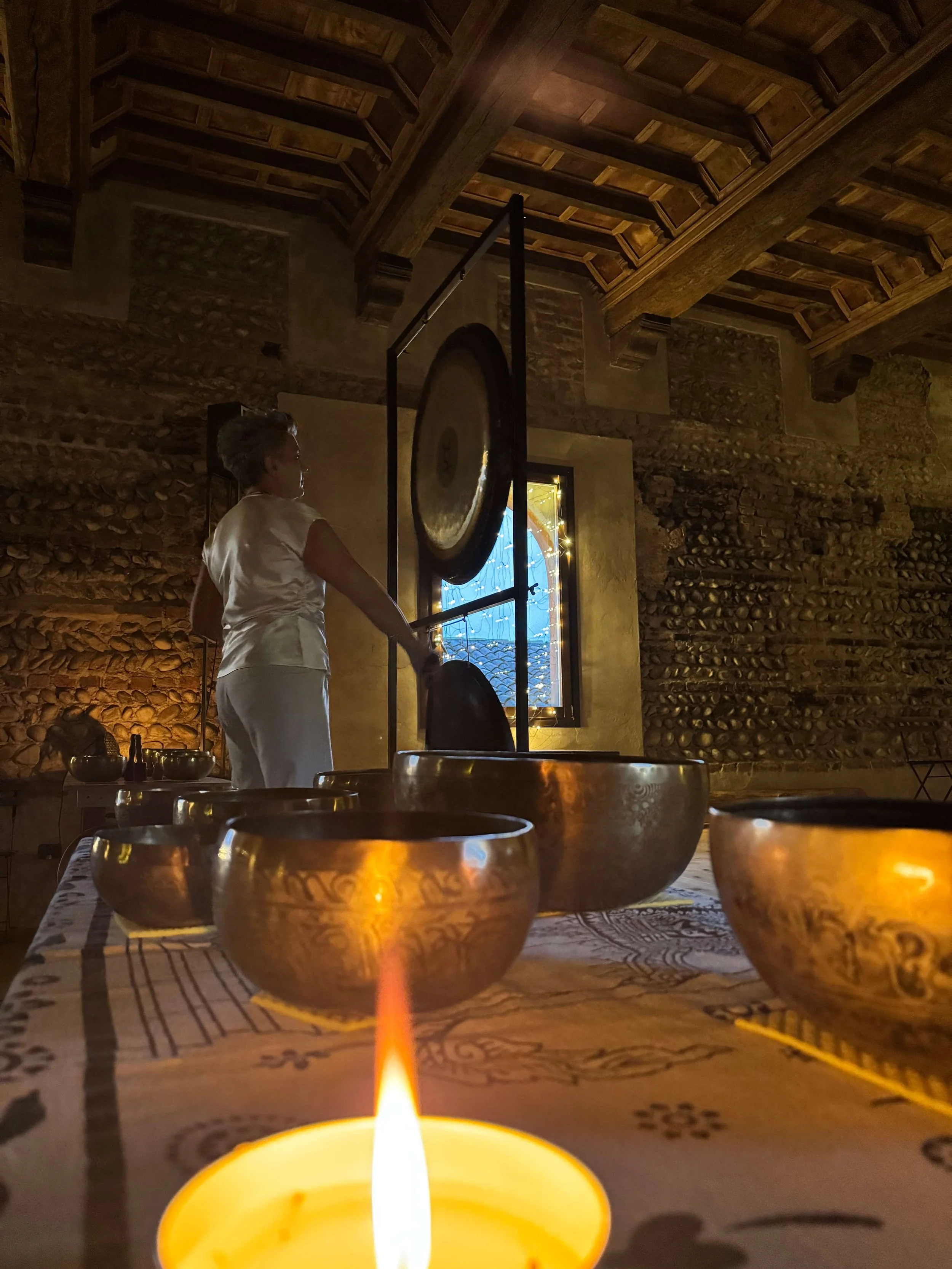 Tra pietra, legno e luce naturale, il Castello è una cornice ideale per ritiri di yoga, meditazioni e cerimonie del suono.